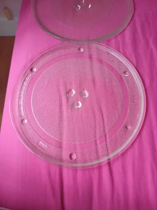 Plato de cristal para microondas. Ideal para reemplazar el plato original o tener uno de repuesto. - Material: Vidrio. - Diseño circular con tres soportes en la base. Los dos 5 eur. Uno 3