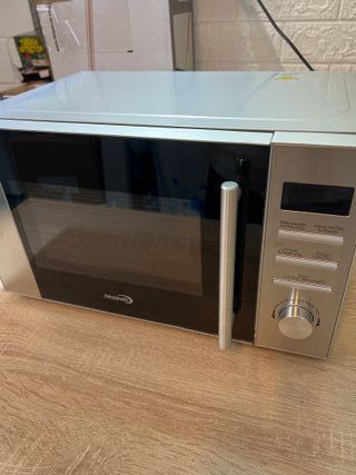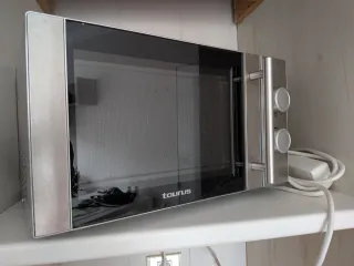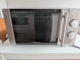 Microondas Taurus modelo MW2070XG en acabado plateado. - Diseño moderno y elegante. - Puerta con cristal. - Dos mandos giratorios para control. Se encuentra en Bilbao y hay que venir a por el.