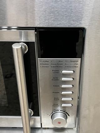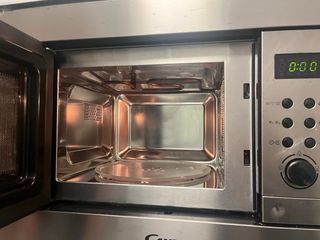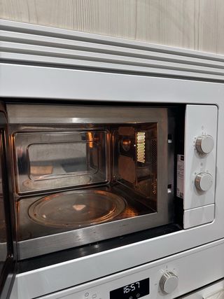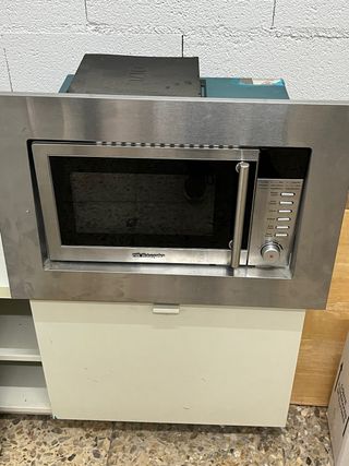 Microondas empotrable en buen estado. - Acabado en acero inoxidable. - Panel de control con botones y dial.