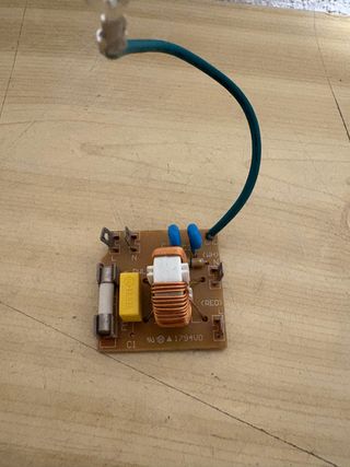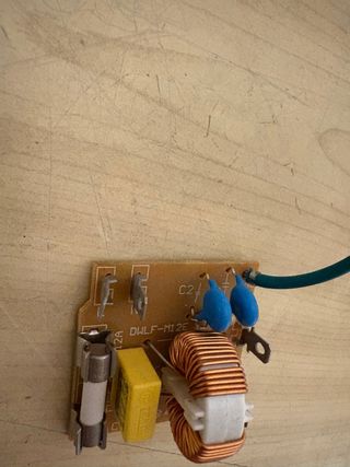 Placa electrónica de repuesto para microondas. - Componente electrónico con fusible y condensadores. - Bobina de cobre enrollada. - Marcaje TERTA C1 y ▲1794V0.