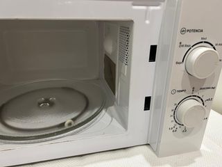Microondas de la marca "ok.". Funciona, pero si se usa de seguido "se apaga". Creo que es porque el ventilador que refrigera el magnetrón no funciona. Me explico, antes hacía más ruido pero ahora es más "silencioso". Una vez se enfría el aparato, si queda tiempo puesto, reanuda su funcionamiento. De ahí el precio. Para el que quiera repararlo o cacharrear con él. - 20 litros de capacidad. - 700W de potencia. - 5 potencias: bajo, medio bajo, medio, medio alto, alto - Mandos manuales. - Recuerdo, que necesita reparación, o se puede usar tal y como está en ciclos cortos de tiempo. Recogida en mano zona barrio de la laguna (Cádiz).