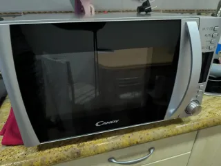 Microondas Candy en color plata. Diseño moderno y funcional para tu cocina. Funciona perfectamente solo está desconchada un poco la pintura, pero funciona a la perfección, lo vendo por cambio de cocina - Marca: Candy - Color: Plata