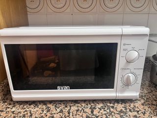 Microondas de la marca Svan en perfecto estado, casi nuevo. - Color blanco. - Puerta abatible. - Plato giratorio interior. - Opción de descongelado. Debe venir a Córdoba a recogerlo.