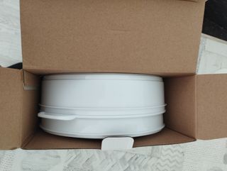 Vaporera de cocina en buen estado. Perfecta para cocinar al vapor tus alimentos favoritos de forma saludable y sencilla. 17 cms de alto..apto para microondas. - Tres pisos de capacidad. - Material plástico resistente. - Tapa transparente.