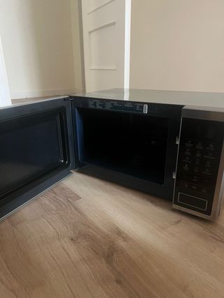 Microondas de acero inoxidable marca AYOMI. - Diseño moderno y elegante. - Panel de control con botones. - Puerta con asa. - Pantalla digital. Hay varios 30€ y otros 20€