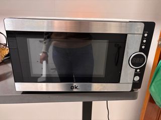 Microondas de la marca OK. con acabado plateado y negro. - Diseño moderno. -Funciones: grill, defrost y hasta 800W. - Panel de control con botones. - Pantalla digital. Lo vendo porque no gira bien por el oxido que tiene en la base del plato. Lo incluiría con el plato y con los hierros de grill.