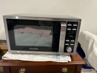 Microondas de la marca BLACK+DECKER con acabado en acero inoxidable. - Diseño moderno y elegante. - Panel de control digital. - Puerta con asa. -con grill