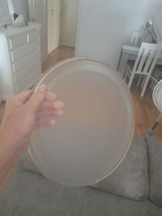 Plato horno-microondas de cristal B 16. Tal como se ven en las fotos . Medida aproxima 24 y medio.