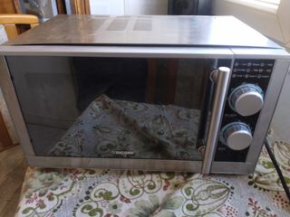 Microondas de la marca Johnson en buen estado. - Color plateado y negro. - Panel de control con botones y dial. - Puerta con ventana. - Precio: 79€.