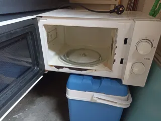 Microondas blanco en buen estado general, con desgaste en los números de los diales y en algunas zonas de la chapa, pero funciona correctamente. No hago envíos. - Color blanco. - Diseño compacto. - Funciona adecuadamente.
