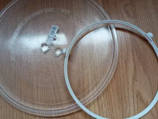 Plato giratorio de cristal para microondas Teka en buen estado. Incluye el anillo de soporte. Ideal para sustituir el plato roto de tu microondas. - Plato de cristal transparente. - Anillo de soporte metálico. - Perfecto para microondas Teka.