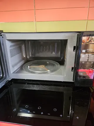 Microondas combi con función de horno y grill. Su acabado en negro brillante le da un toque moderno a tu cocina. Poco usado - Puerta con tirador metálico. - Panel de control digital. - Múltiples funciones preprogramadas.