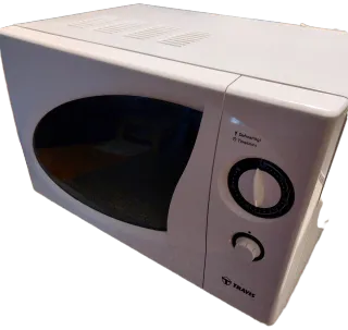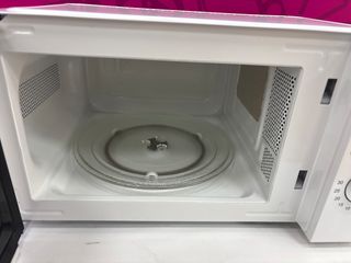 Microondas blanco de la marca Daewoo. - Diseño compacto y funcional. - Panel de control con mandos giratorios. Funciona perfectamente, pero se quemó un saco de semillas y la mancha no he podido quitarla. A lo mejor hay algún producto que pueda eliminarla.