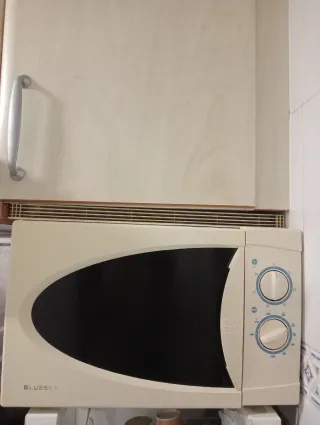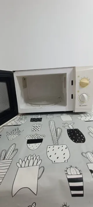 Microondas de color blanco de la marca Bluesky. Un electrodoméstico práctico para tu cocina. - Diseño compacto. - Panel de control con diales para potencia y tiempo. funciona perfectamente. precio negociable