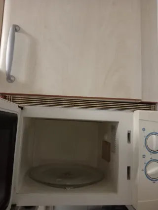 Vendo este microondas compacto de IKEA, modelo TILLREDA (ref. 504.867.92), en perfecto estado y completamente funcional. Es ideal para cocinas pequeñas gracias a sus medidas de 43,9 x 34 x 25,8 cm y capacidad de 20 litros.[ikea +2] Especificaciones clave • Potencia máxima: 700 W con 5 niveles ajustables mediante mandos giratorios sencillos.[manuals +1] • Plato giratorio de 25,5 cm para calentar uniformemente.[islas.ikea +1] • Voltaje 230-240V, cable de 1 m, peso 11 kg.[ikea +1] • Apertura push sin tirador, diseño blanco minimalista.[ikea] Estado y uso Funciona perfectamente, interior y exterior limpios (como se ve en fotos). Poco