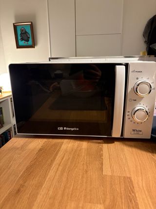 Microondas blanco de la marca Orbegozo, modelo White CLASS. Disponible a partir del 15 de enero. Perfecto estado y funcionamiento