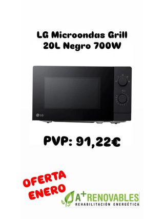 Microondas LG con función grill, capacidad de 20 litros y potencia de 700W. Color negro. - Modelo: LG Microondas Grill - Capacidad: 20L - Potencia: 700W - Color: Negro - Incluye función Grill Cocina diaria más sencilla con el microondas LG 20 litros: calienta, descongela y gratina con precisión y estilo. #MicroondasConGrill #LGElectrodomésticos #MicroondasNegro #CocinaModerna #ElectrodomésticosHogar #Microondas20L #APlusRenovables #TuUltimoClic #Viral #ParaTi