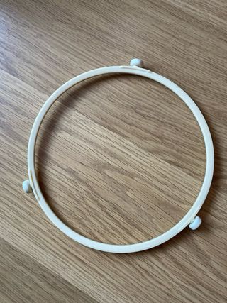 Aro de soporte para plato de microondas. Mide 19 cm de diámetro. Impecable. - Color blanco. - Material plástico. - Tres ruedas que permitan girar el plato