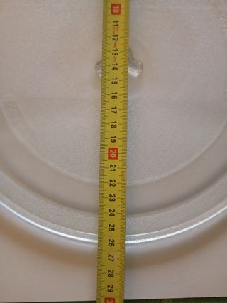 Medida 27 cm.Plato giratorio de cristal para microondas. Diseñado para un uso seguro y eficiente. De 27 cm diámetro - Material: Vidrio resistente. - Diámetro: [Insertar diámetro si se conoce]. - Compatible con la mayoría de microondas estándar.