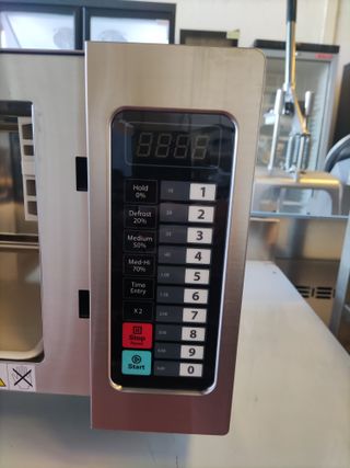 En venta microondas de uso profesional fabricado en acero inoxidable. Interio con fondo fijo cerámico (sin plato giratorio). Capacidad 23 litros. Potencia 900W. Medida exterior 49 x 39 x 29 cm. Medida interior 34 x 34 x 20 cm. Nuevo a estrenar con un año de garantía. . . . . . 220€ + IVA . . . . . .