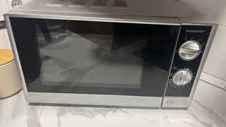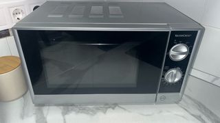 Microondas de la marca Home en color plateado. Ideal para tu cocina. - Diseño moderno. - Panel de control intuitivo.
