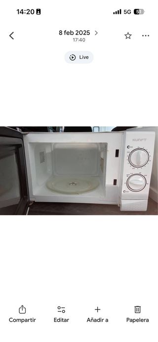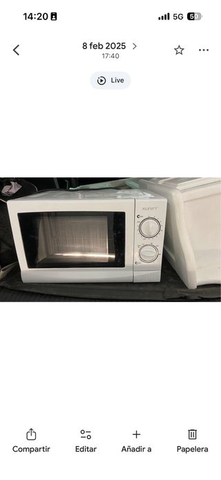 Microondas Toshiba Perfecto estado! Microondas Toshiba W2M20G / TMG20MM-21 en muy buen estado. Funciona sin problemas y calienta rápido. Detalles: • Potencia microondas: 700 W • Potencia grill: 1000 W • Entrada microondas: 1050 W • Voltaje: 230 V • Fabricado por Midea Europe GmbH • Muy cuidado, sin golpes ni arañazos Ideal para cocina diaria o piso de alquiler. Listo para entregar. Si quieres, puedo añadir más fotos.