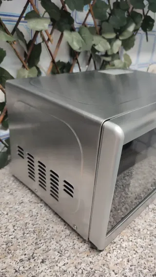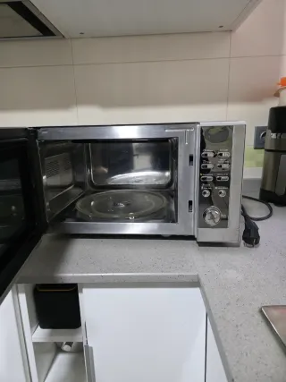 Este electrodoméstico combina las funciones de microondas, grill y horno de convección, ofreciendo versatilidad en la cocina. - Diseño moderno en acero inoxidable. - Panel de control intuitivo.