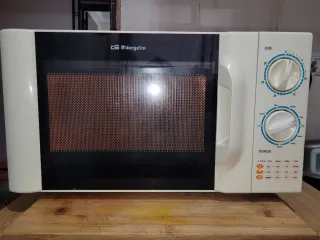 Microondas Orbegozo con función grill, bastante usado pero en perfecto estado de funcionamiento. - Potencia regulable. - Función grill. - Temporizador.
