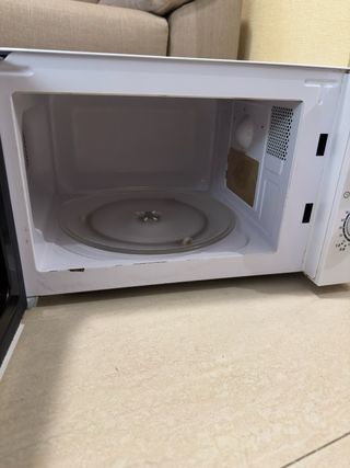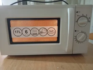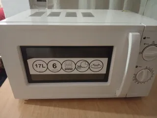 Microondas blanco con capacidad de 17 litros y potencia de 600W. - 6 niveles de potencia. - Temporizador de hasta 30 minutos. - Plato giratorio. Recoger en málaga capital