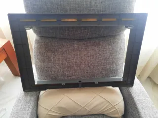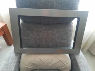 Marco de aluminio para microondas. Diseño moderno y elegante. En perfecto estado. - Material: Aluminio. - Color: Plateado. - Medidas de largo : 59,50 cm. y de ancho 38,20 cm. - SE HACE ENVÍO.