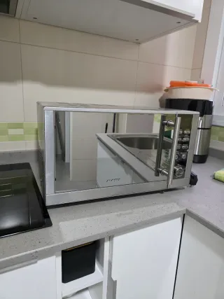 Usado solamente 5 meses.Lo vendo por mudanza. Microondas de 20 litros de capacidad, con revestimiento Anti-Dirt iTech y tecnología 3DWave. Microondas de 20 l de capacidad. Interior con revestimiento Anti-Dirt iTech repele la suciedad y facilita la limpieza. Tecnología 3DWave con un sistema de ondas más eficiente que envuelve al 100 % los alimentos. 700 W de potencia microondas en 6 niveles. Diseño elegante con puerta FullCrystal y detalles metalizados. Modo de descongelación que se adapta a todos los alimentos. Temporizador hasta 35 minutos. Avisador acústico de final de cocción