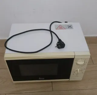 Microondas en buen estado, funciona correctamente y calienta la comida. - Color blanco. - Temporizador manual. - Plato giratorio de cristal.