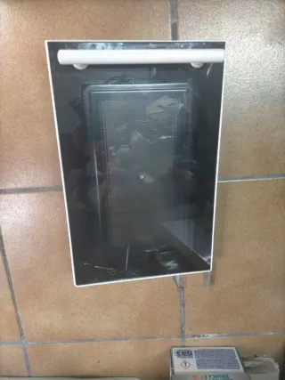 Puerta de microondas con cristal de la marca Grunkel. Pieza de repuesto. Medida 37×24. - Cristal negro. - Marco blanco.