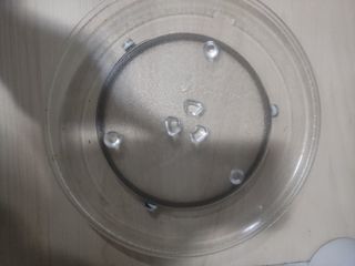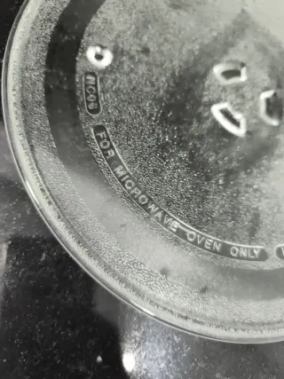 Plato de vidrio para microondas. Diseñado para adaptarse a la mayoría de los hornos microondas. - Material: Vidrio templado. - Diámetro aproximado: 24.5 cm. - Con tres muescas para el soporte giratorio.