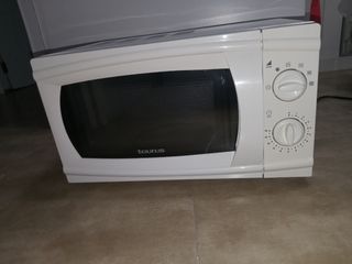 Microondas Taurus color blanco, todas las funciones operativas, varias opciones de funcionamiento (modo descongelar, varios tipos de potencias). Tiene un desgaste de pintura en el interior. (De ahi el precio). Para una segunda vivienda, para un campo, para lo que lo necesite, tiene un microondas a precio bastante asequible (ni el plato del mismo sale tan barato). Pregunte sin compromiso. Gracias.