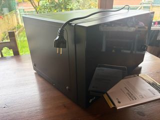 Microondas LG Smart Inverter con tecnología Inverter de 23 litros de capacidad. - Funciones: microondas, grill, freidora de aire, horno, descongelado y cocción uniforme. - Color negro con frontal efecto espejo. - Incluye plato giratorio, rejilla/grill interior y manuales originales. - Comprado hace 3 meses, muy poco uso, como nuevo. - Sin golpes ni arañazos, funciona perfectamente.