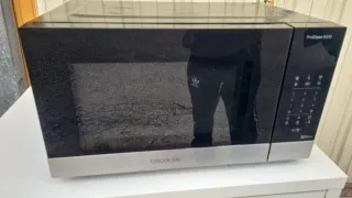Microondas Cecotec ProClean 3110 en buen estado con grill. Tiene algunos pequeños desperfectos estéticos en el asa tal y como se puede apreciar en las imágenes. Incluye el plato de cristal de microondas, y para gratinar. - Modelo: ProClean 3110 - Marca: Cecotec