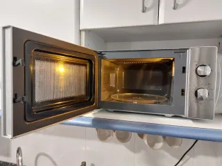 Microondas Daewoo gran potencia. tiene unos pequeños roces en la parte superior, el resto esta todo bien, funciona perfectamente.