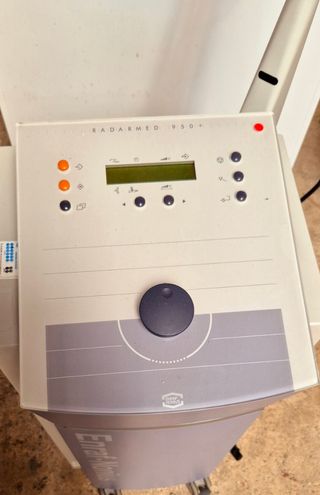 El Radarmed 950+ son dispositivos para terapia de microonda con una frecuencia de 2450 MHz ondas de 12 cm. La posibilidad de hacer una dosis segura a base del sentimiento de calor del paciente es una gran ventaja en la terapia de microonda. La terapia de microonda es sencilla de aplicar gracias a la aplicación unipolar. Los electrodos no tienen contacto físico com el paciente y por eso, es simple, seguro e higiénico en su aplicación. ● Potencia contínua o pulsada ● Conectar desde potencia contínua a potencia pulsada ● Los parámetros están convenientemente ordenados en el display ● Los parámetros permanecen visible