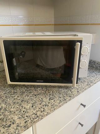 Microondas Cecotec en buen estado. Es de color blanco y tiene un diseño sencillo. - Funciona con botones giratorios. - Se encuentra en perfectas condiciones estéticas. - Varias funciones