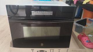 Horno microondas compacto de la marca Balay con un diseño moderno y elegante. - Acabado en cristal negro. - Panel de control táctil. - Tres años de huso moderado. -Bien conservado. Le falta únicamente uno de los soportes de la rejilla interior.