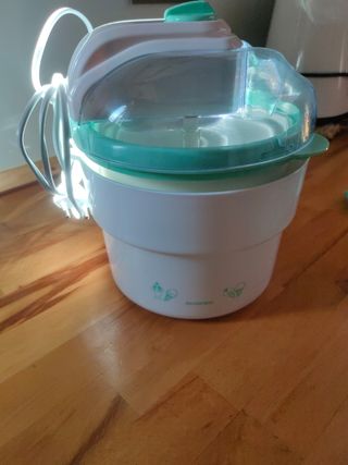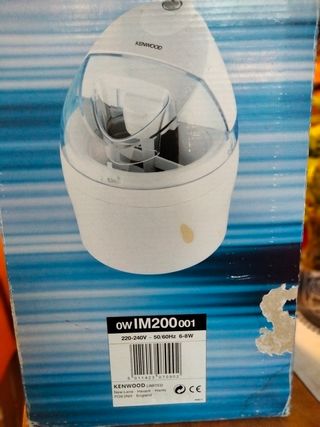 Vendo una heladera para hacer helados Kenwood IM20001, en buen estado. Es de color blanco y tiene un diseño elegante. - Modelo: IM20001 - Marca: Kenwood - Voltaje: 220-240V - Frecuencia: 50-60Hz - Potencia: 6-8W