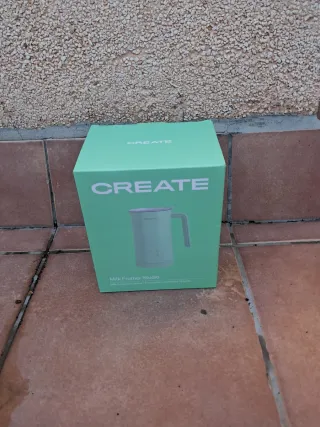 Calentador y espumador de leche de la marca CREATE. - Modelo: Milk Frother Studio. - Color: Blanco. - Diseño moderno.