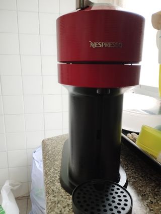Cafetera Nespresso Vertuo de color rojo, en buen estado. - Modelo Vertuo. - Color rojo. - Incluye base y bandeja.
