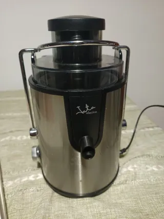 Licuadora de la marca Jata Electro, con un diseño moderno y funcional. - Cuerpo principal de acero inoxidable. - Asa metálica para facilitar su transporte. - Boquilla para la salida del zumo. Modelo última foto