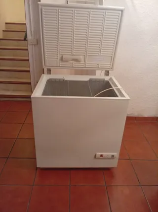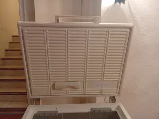Arcón congelador de color blanco. Muy poco uso. - Diseño compacto. - Rejilla de ventilación frontal.