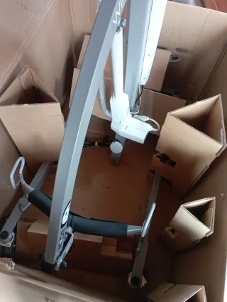 Grúa eléctrica para facilitar la movilidad. - Estructura metálica gris. - Base con ruedas para desplazamiento. - Asa de agarre. - Incluyo arnés talla M Venta en persona. No se envía.