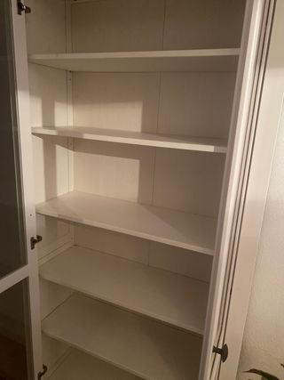 Se vende una vitrina de madera, color blanco, practicamente nueva. Se puede urilizar como estanteria en cualquier rincon de la casa