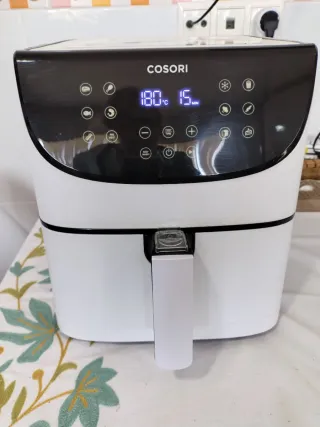 Freidora de aire Cosori en color blanco. Cuenta con pantalla digital y varios programas preestablecidos. - Panel de control táctil. - Temporizador y control de temperatura. - Diseño moderno y compacto.