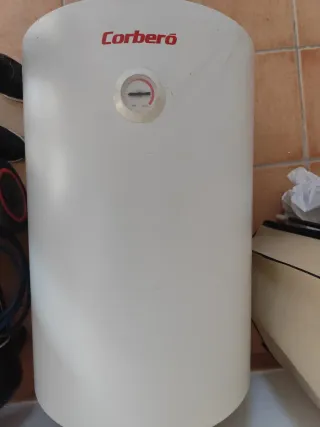 Termo eléctrico de la marca Corberó, color blanco. - Diseño cilíndrico. - Indicador de temperatura. - 80 litros de capacidad. - Funciona. - Recomiendo limpiarlo. - Vendo por cambio a uno mas grande.